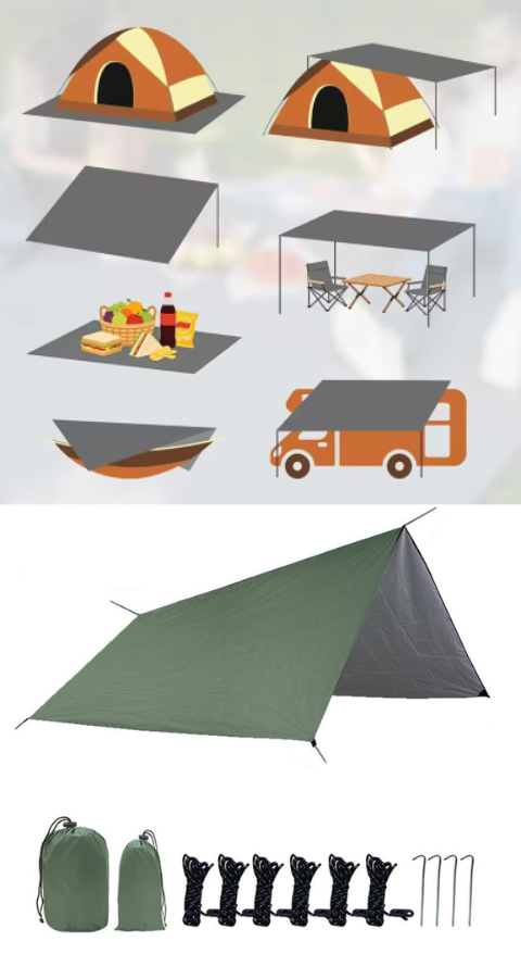 - Багатофункціональне використання (навіс, укриття, килимок)